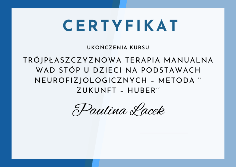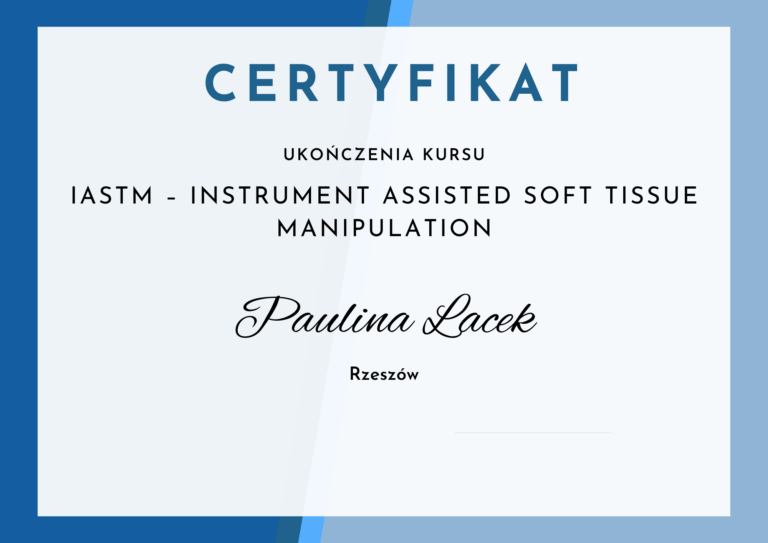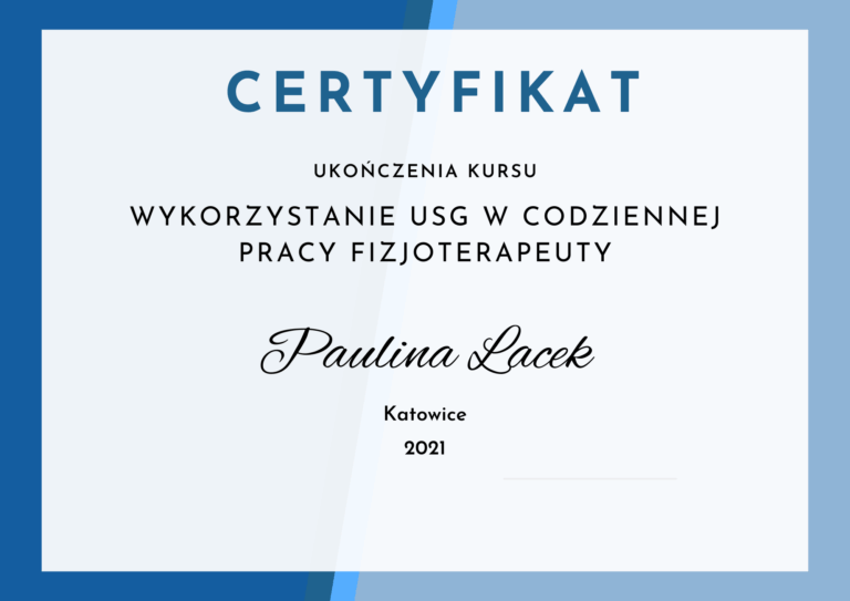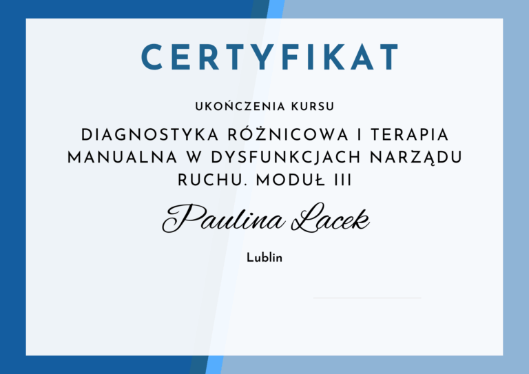 - Członek Krajowej Izby Fizjoterapeutów – prawo wykonywania zawodu fizjoterapeuty nr 18787.