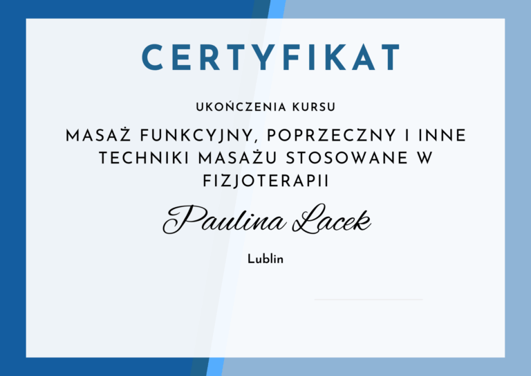 Dr Paulina Lacek jest doktorem nauk medycznych oraz doświadczoną fizjoterapeutką, od 14 lat specjalizującą się w fizjoterapii onkologicznej. Swoją wiedzę i praktykę koncentruje na kompleksowym wsparciu pacjentów po mastektomii, histerektomii, a także osób zmagających się z nowotworami w obrębie głowy i narządów wewnętrznych.
